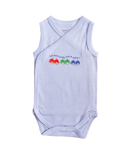 *Ce body croisé, sans manches en 100% Coton, est parfait pour les premiers mois du bébé.