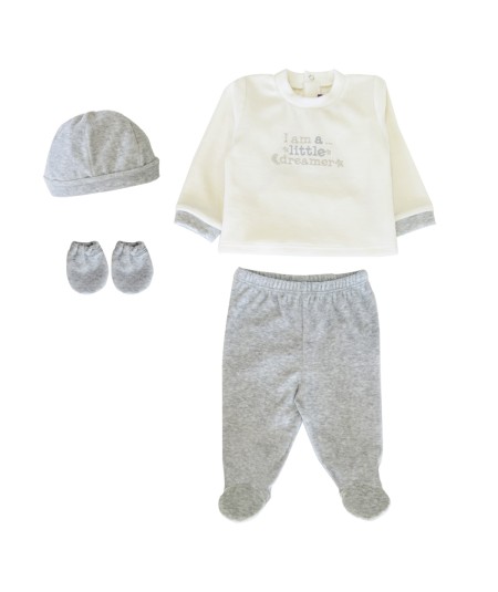 Kit Naissance en velours rasé pour bébé - Gris chiné