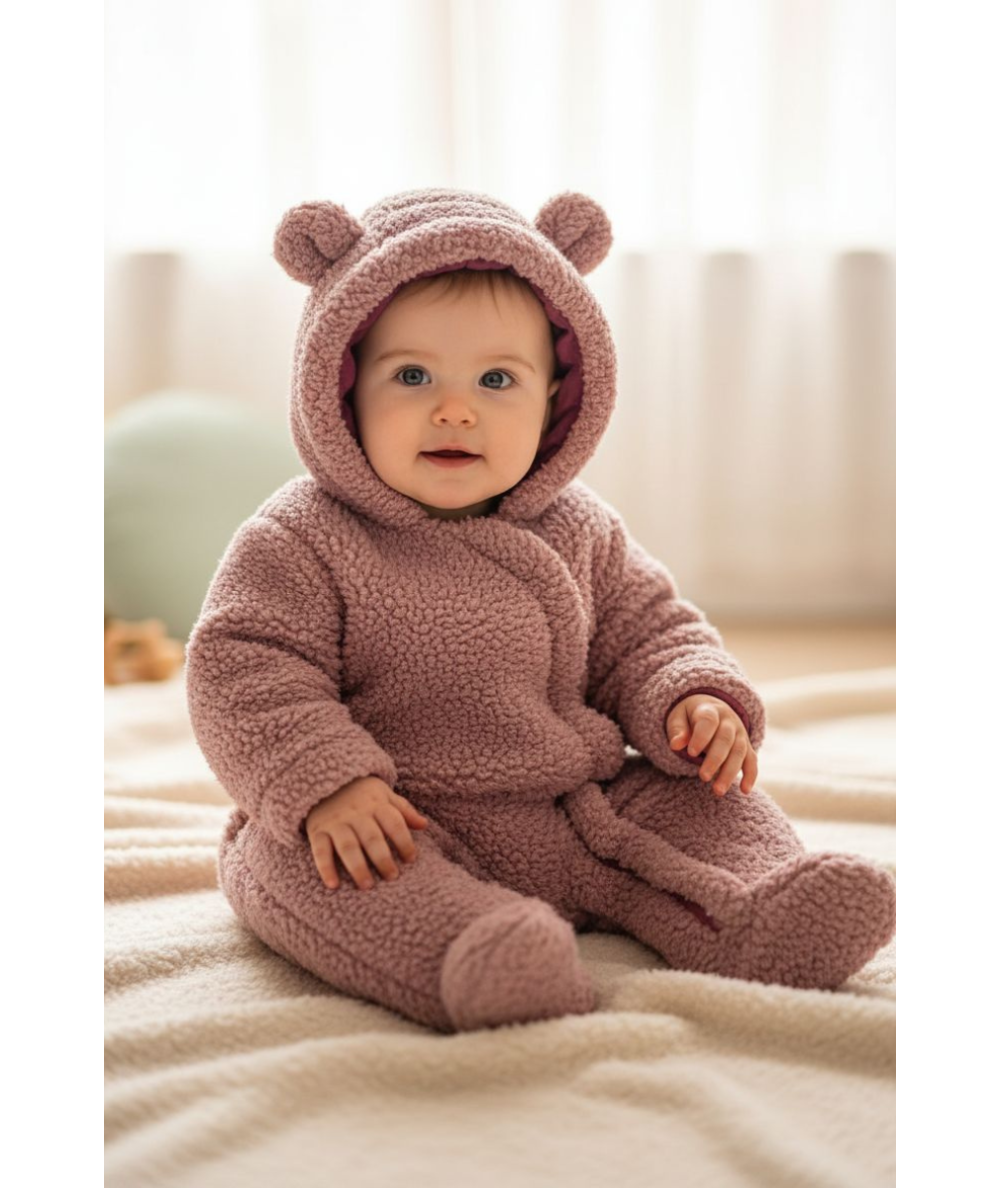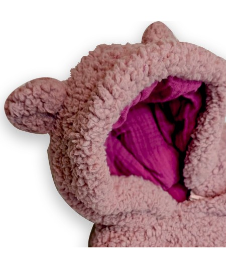 *Combi pilote moutonnée doublée en gaze de coton, dotée de moufles intégrées, d’une fermeture zippée pratique et de petites oreilles adorables pour un look craquant.