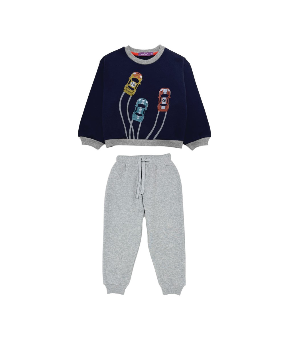 Ensemble sweatshirt et pantalon en molleton gratté pour bébé et enfants - Gris chiné et marine