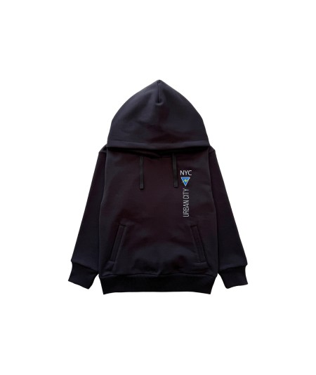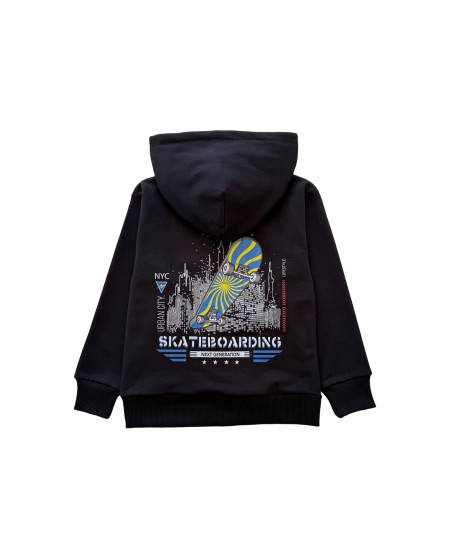 Sweat à capuche en molleton gratté noir, avec deux poches pratiques et des décorations sur le devant et le dos, doux et confortable, idéal pour accompagner les enfants tout au long de la journée avec style.
