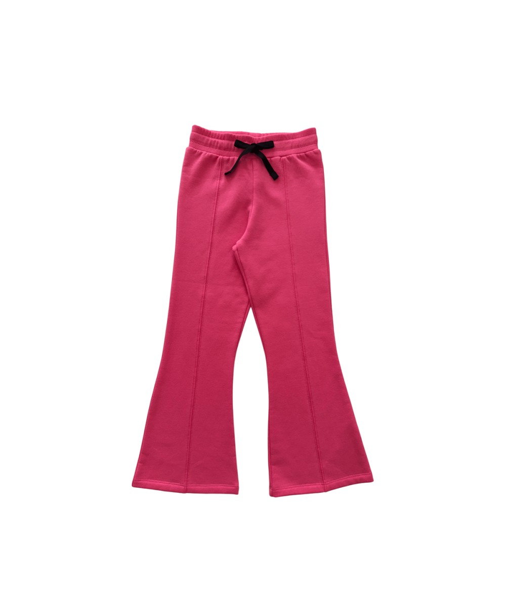 Pantalon flare en molleton gratté coloris fuchsia, confortable et souple, avec ceinture élastiquée et cordon ajustable pour un maintien parfait. Idéal pour accompagner les enfants avec style et aisance au quotidien.