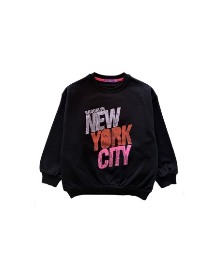 Sweatshirt col rond en molleton gratté coloris noir, doux et confortable, idéal pour garder les enfants au chaud tout en apportant une touche sobre et élégante à leurs tenues.