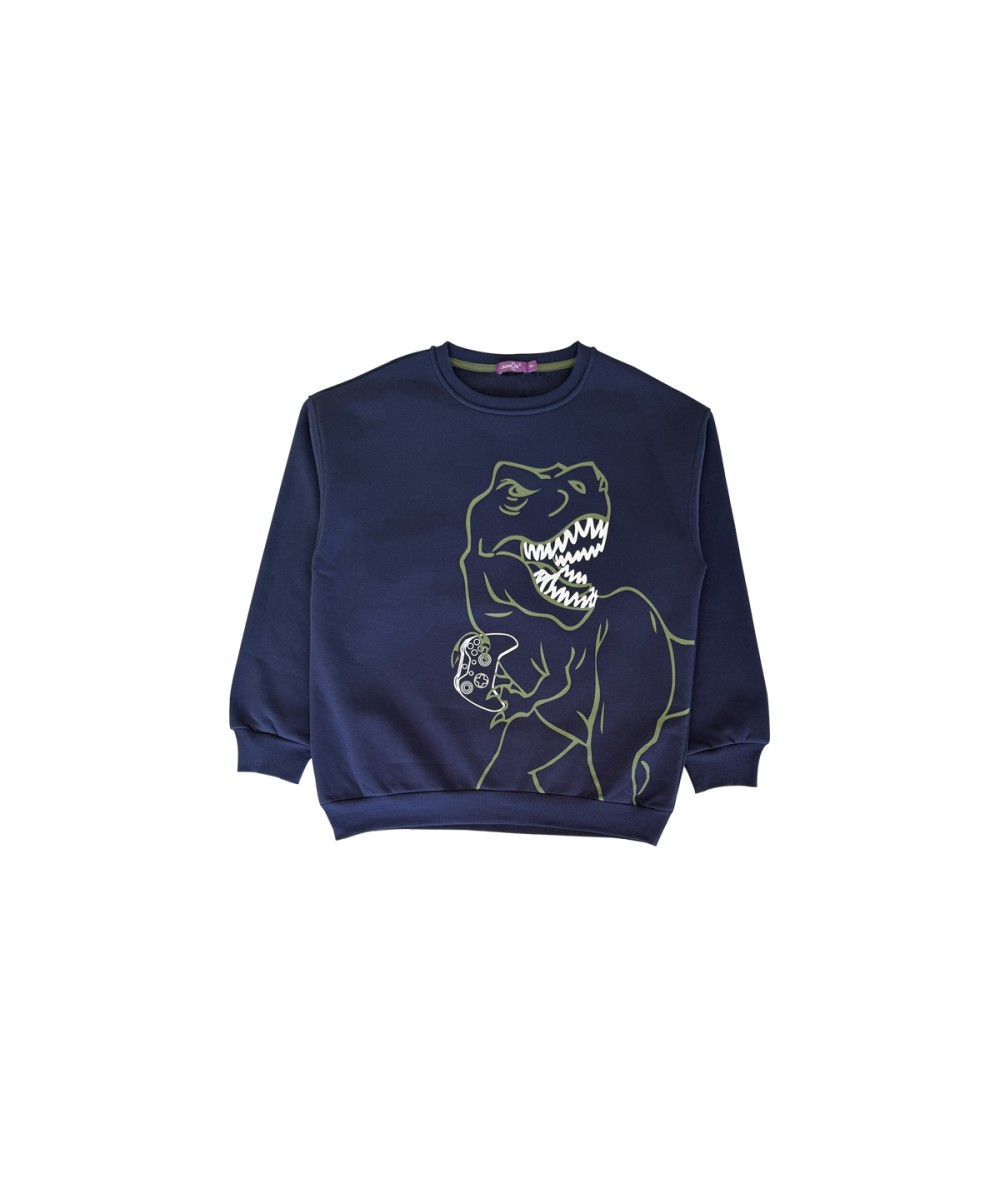 Sweatshirt en molleton gratté marine, alliant douceur et confort, décoré d’une sérigraphie au style moderne.