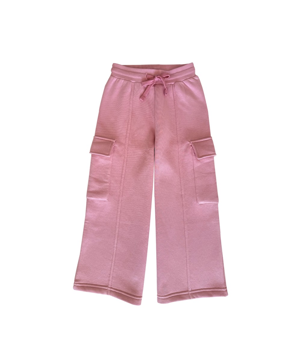 Pantalon cargo en molleton gratté rose, confortable et stylé, parfait pour un look décontracté au quotidien.