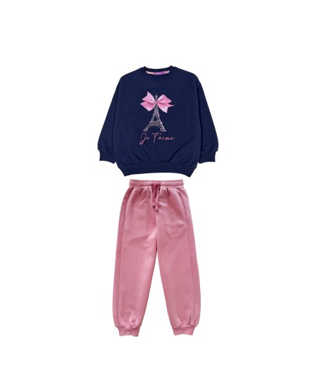 Ensemble composé d’un sweatshirt col rond en molleton gratté coloris marine et d’un pantalon baggy joggers en molleton gratté coloris rose, doux et confortable, cet ensemble offre style et liberté de mouvement aux enfants au quotidien.