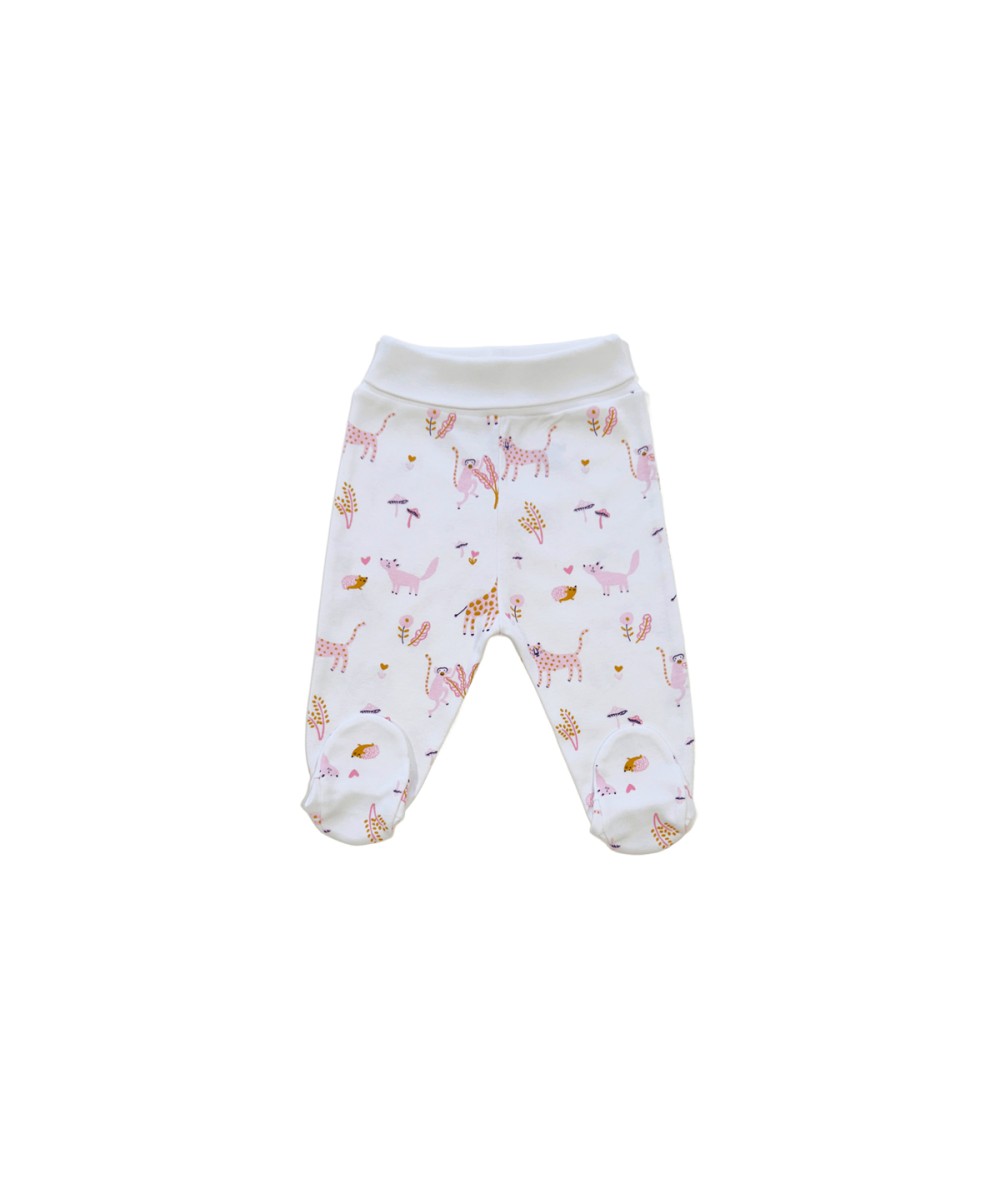 Ce pantalon pour bébés, en 100% coton imprimé , renferme des chaussettes intégrées, qui gardent les petits pieds bien au chaud.