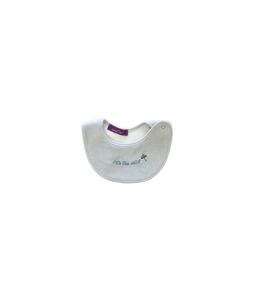 Bavoir petit format  ajustable, en velours rasé ciel, orné d'une broderie, pour bébé. Idéal pour les premiers repas ou les petites bavouilles du quotidien. Un accessoire essentiel dès la naissance.