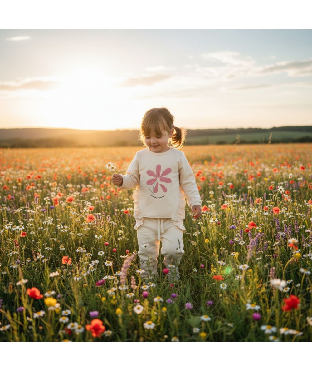 Sweatshirt col rond avec volants en molleton gratté coloris vanille, décoré d’une fleur en tulle brodée et doté d’une ouverture à l’épaule. Doux et confortable, il apporte une touche délicate et élégante aux tenues des bébés et des enfants.