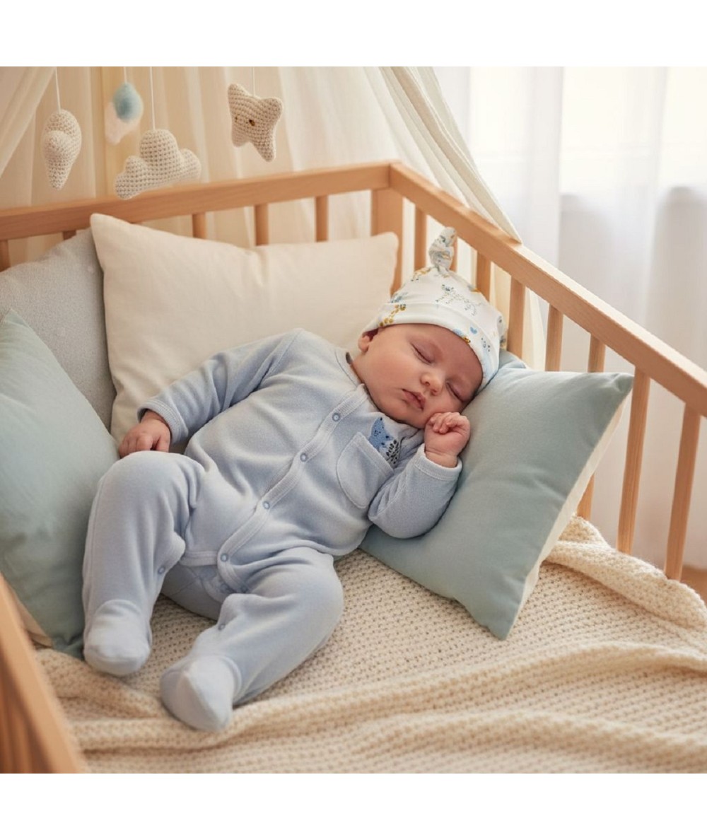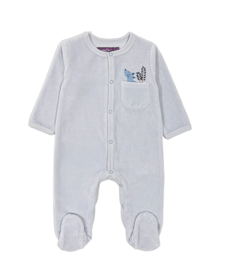 Dors-bien pour bébé  en velours rasé bleu ciel.  Élégant avec ses belles broderies qui sortent d'une petite poche.