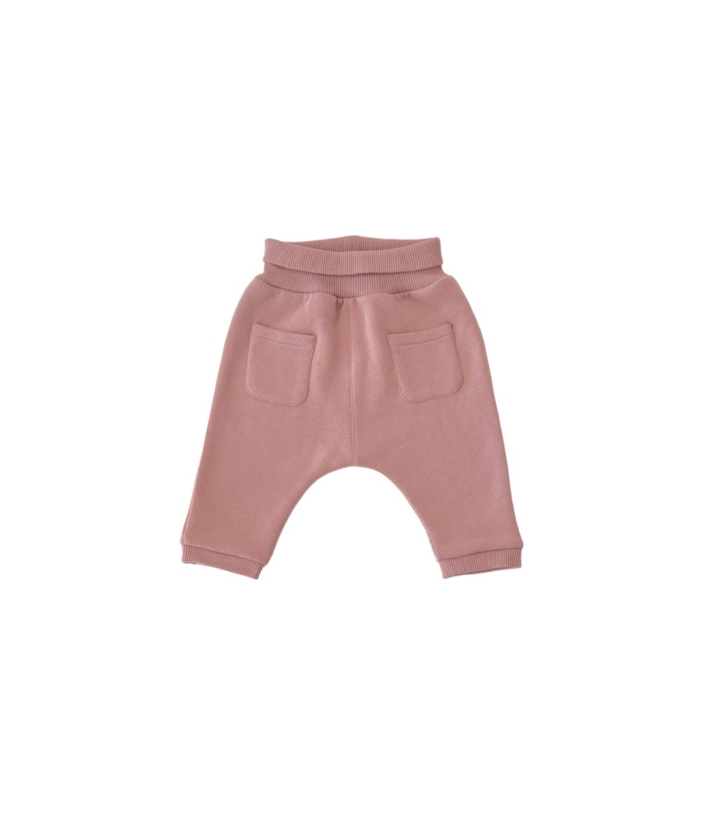 Sarouel pour bébé fille en molleton gratté coloris clay avec deux poches doux et confortable.
