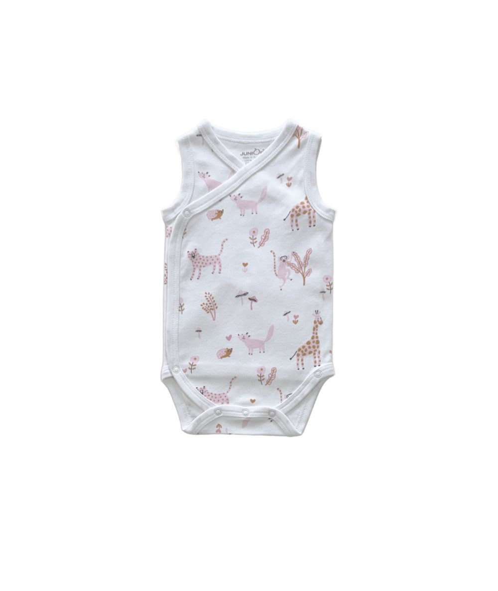 Ce body croisé sans manches en 100% coton imprimé , est parfait pour les premiers mois du bébé, adapté à toutes saisons.