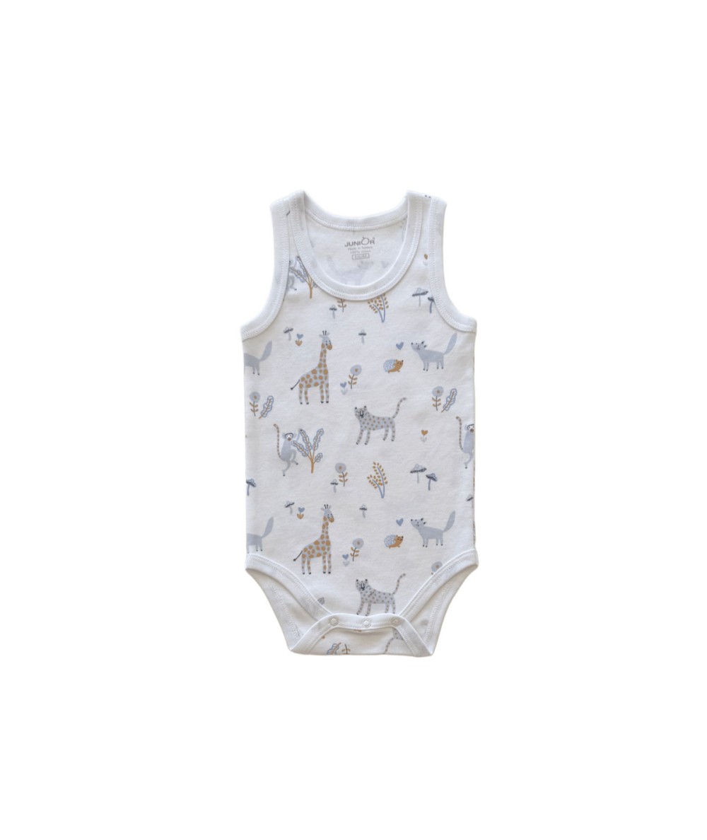 Ce body débardeur imprimé , en 100% coton, est idéal pour les journées chaudes ou en sous-vêtements pour toutes les saisons.