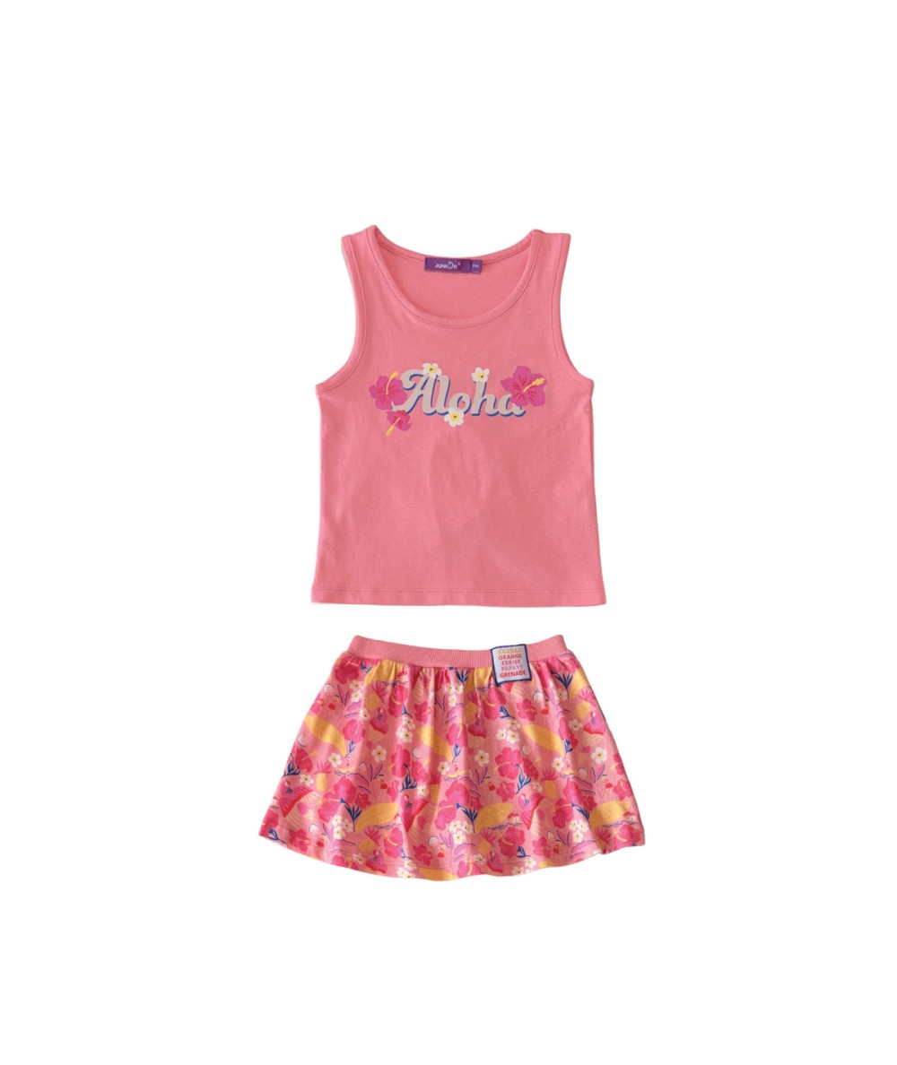 Top estival et casuel pour fille, décoré d'une sérigraphie ambiance tropicale au devant. Tissu : 100 % coton certifié OEKO-TEX® STANDARD 100.