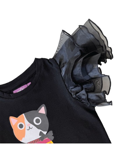 T-shirt manches courtes, pour fille. À la fois stylé et confortable, orné au devant d'une décoration mignonne et avec une manche en organza pour une allure glamour. Tissu : 80 % coton 15% Polyester 5% Élasthanne.