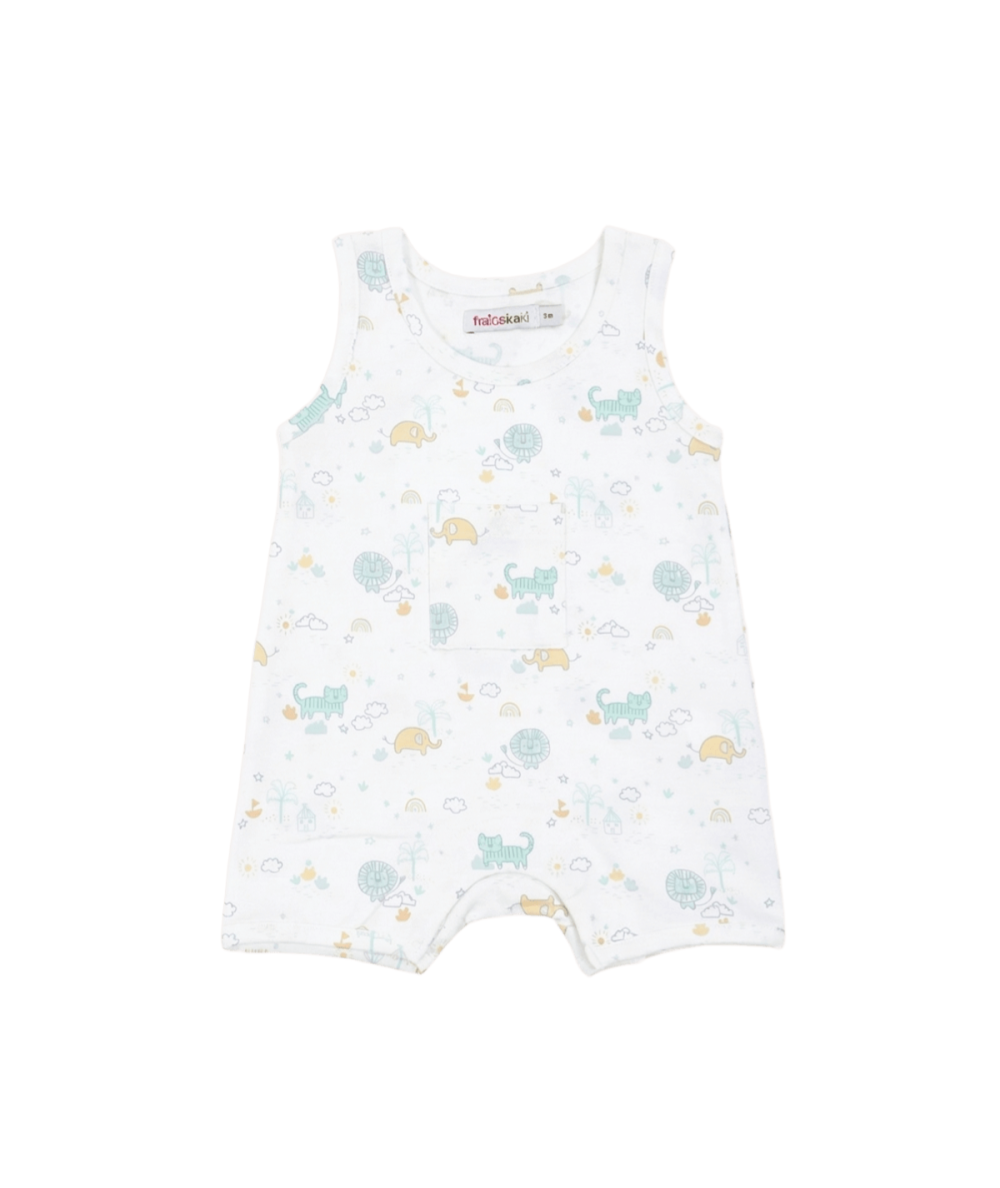 Combicourt sans manches en coton élasthanne imprimé, pour bébé. Pratique et confortable pour les journées estivales.
