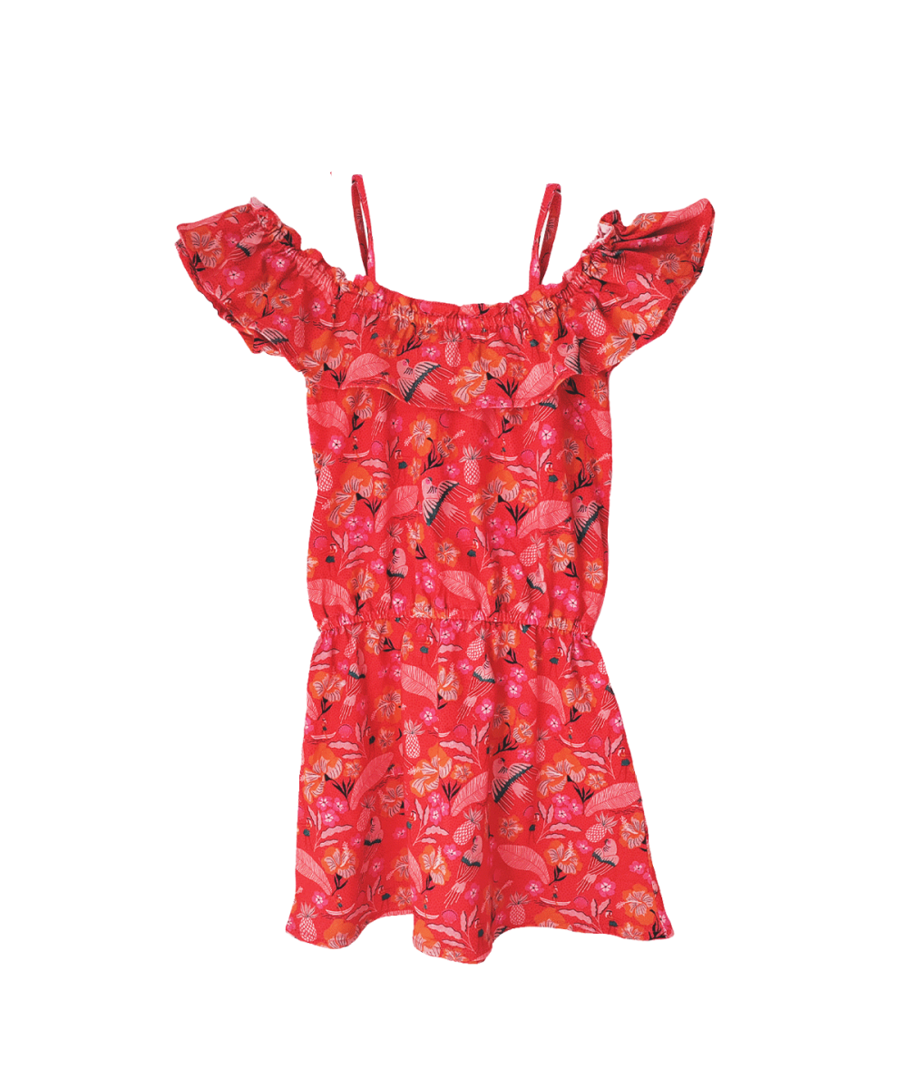 Robe à bretelles avec volants pour fille. Imprimée et en 100% coton, légère et fraîche.